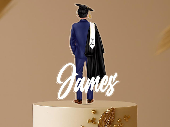 Graduation Cake Topper – Personalized Male Graduate Keepsake in Acrylic | Custom Suit and Cap Decoration