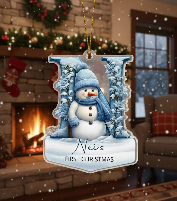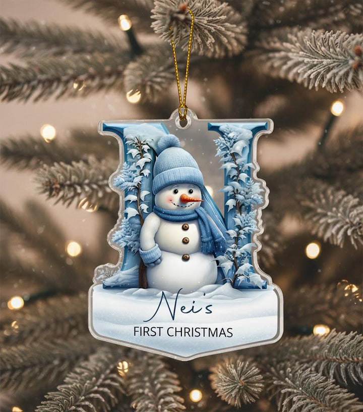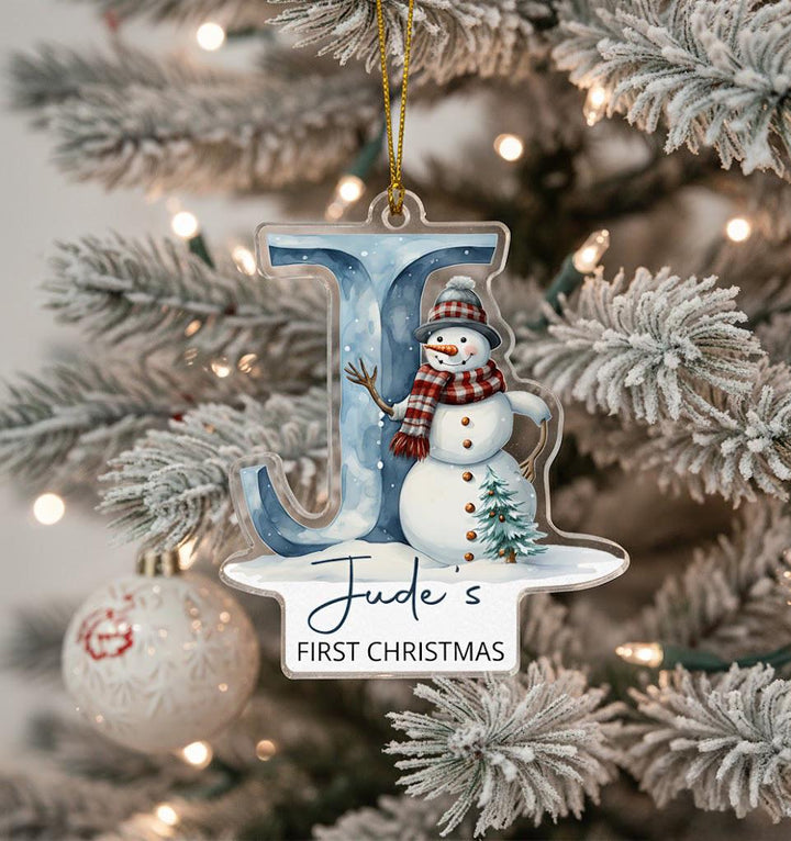 Baby’s First Christmas Ornament – Personalised Initial Acrylic Decoration with Name & Snowman, Custom Baby Boy Gift Keepsake 2025
