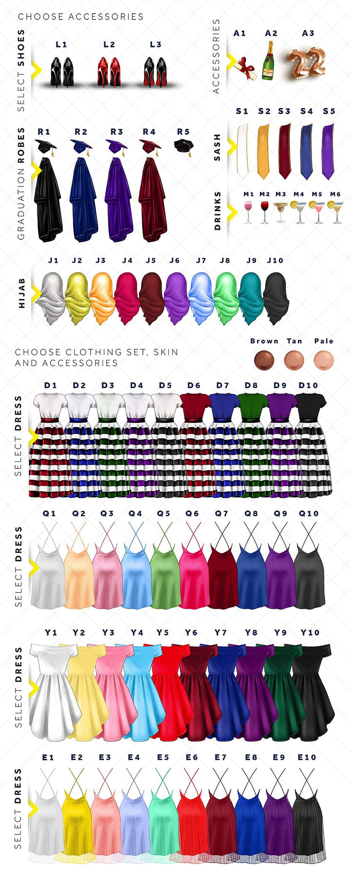 • Stylish graduate figure in cap, gown, and heels → adds sophistication and charm