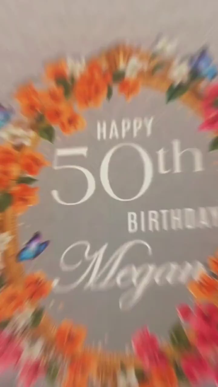 Simply enter the name and number (age or anniversary year) in the personalisation box at checkout. Double-check spelling as we print exactly what you provide. Names up to 15 characters fit perfectly within the elegant floral design.
