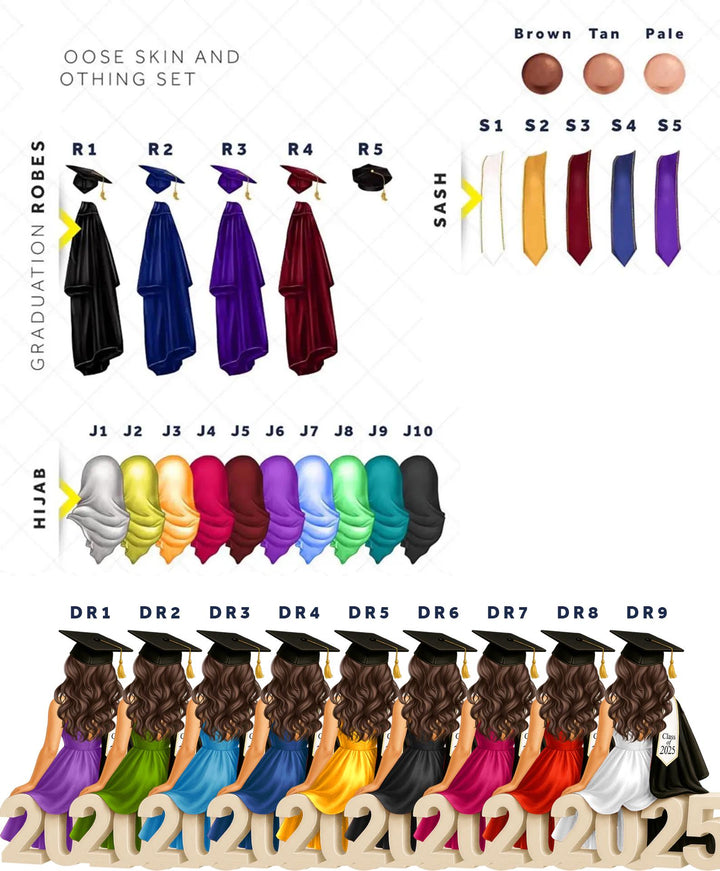 Want to customize further? Message us for options like different hair colors or dress styles. Celebrate your graduate with a red dress graduate design that truly marks this special occasion.