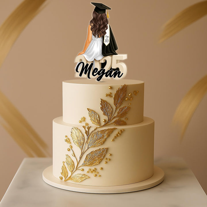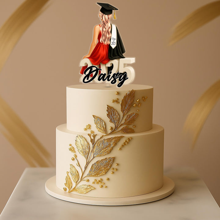 Graduation Cake Topper – Personalized Red Dress Graduate | Class of 2025 Acrylic Decoration