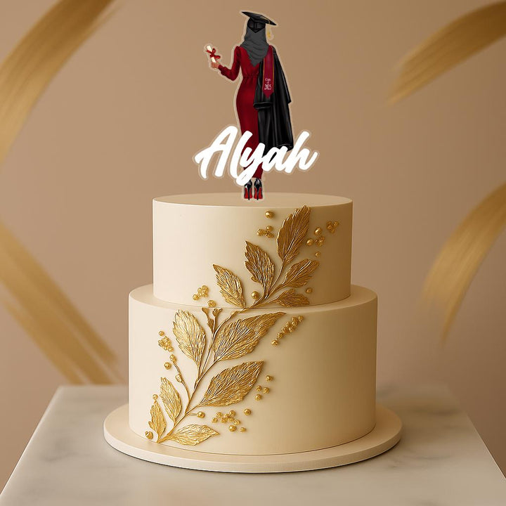 Perfect for daughters, sisters, nieces, friends, or even yourself, this personalized graduation topper blends cultural pride with elegant design. Whether your event is an Islamic or multicultural celebration, this keepsake cake decoration adds a meaningful touch that guests will admire.