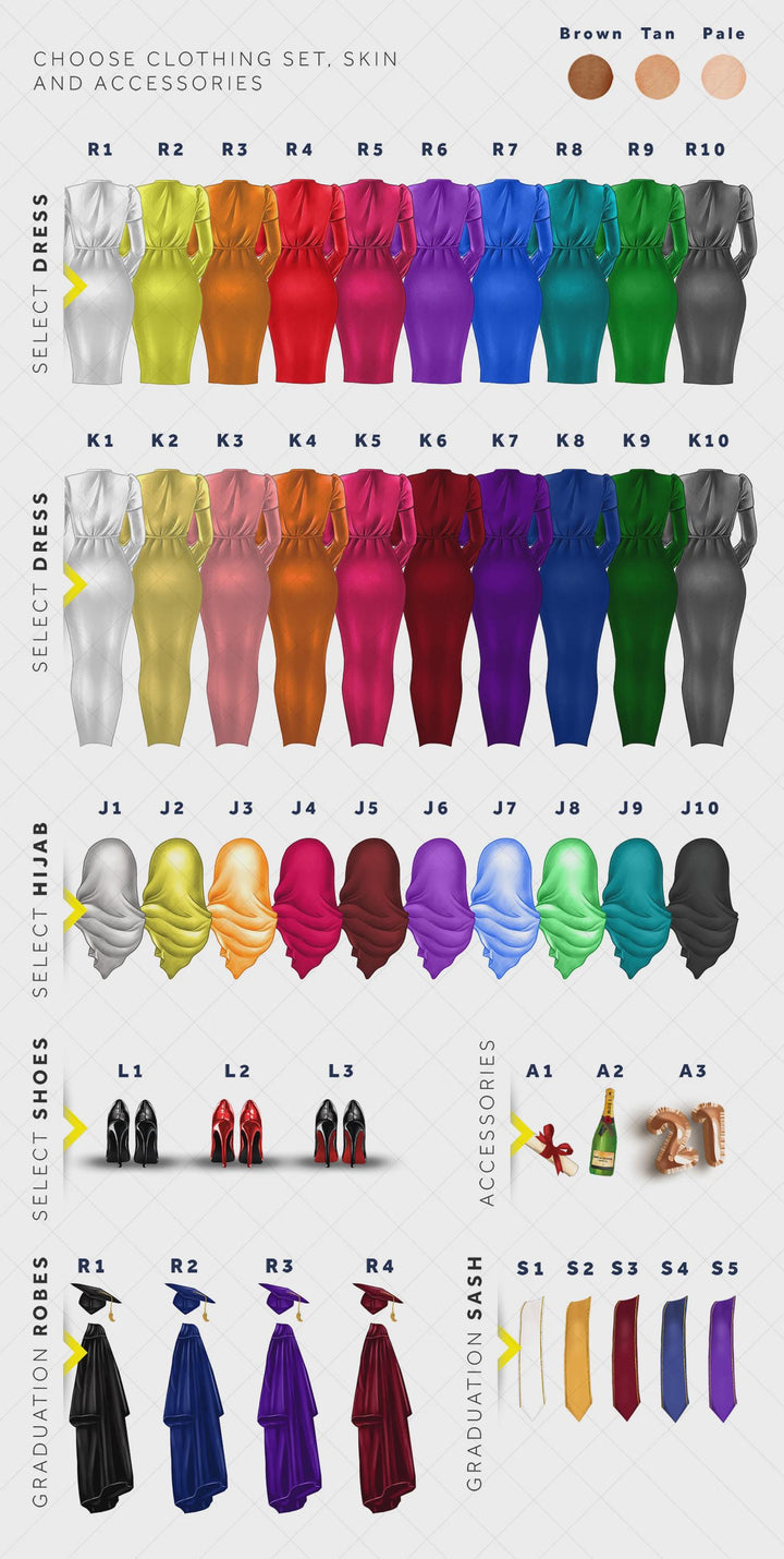 • Female graduate figure wearing a red dress, cap, and gown → represents pride and achievement