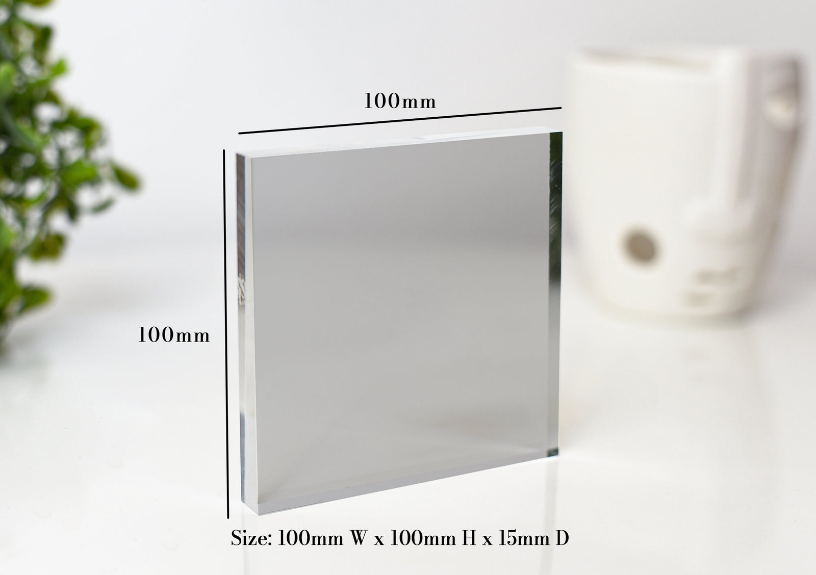Size 100mm W x 100mm H x 10mm Acrylic plaque free stand