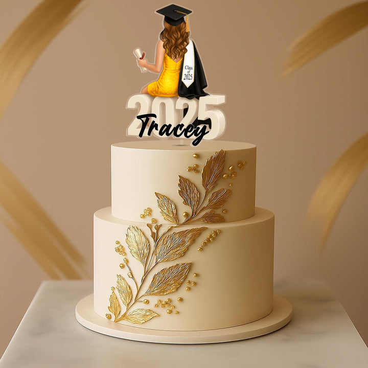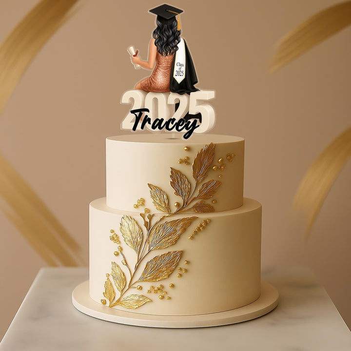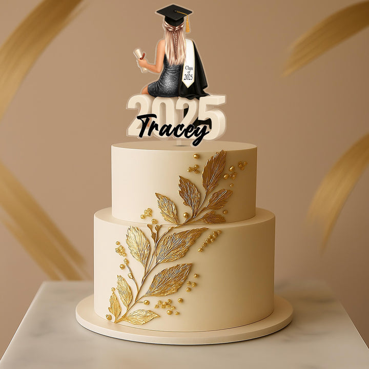 Celebrate your graduate’s special day with this personalized graduation topper, designed to create a memorable and stylish centerpiece for any celebration. This personalized graduation topper features a female graduate in a...