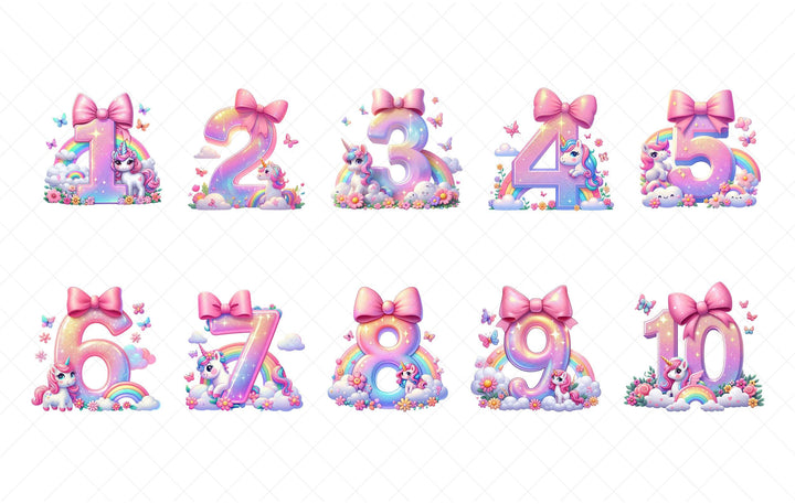- Rainbow gradient numbers available for any age from 1 to 10 and beyond